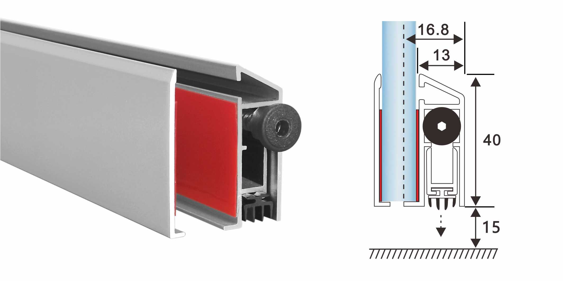 為平開純玻璃門,鋁合金窗框玻璃門,不銹鋼框玻璃門,木框玻璃門特別設(shè)計(jì)的門底自動(dòng)升降式密封器。附件配套齊全,能適應(yīng)有門框或無門框的玻璃門。帶磨砂表面的正面和背面的鋁合金裝飾條,產(chǎn)品表面無螺絲,平整美觀。